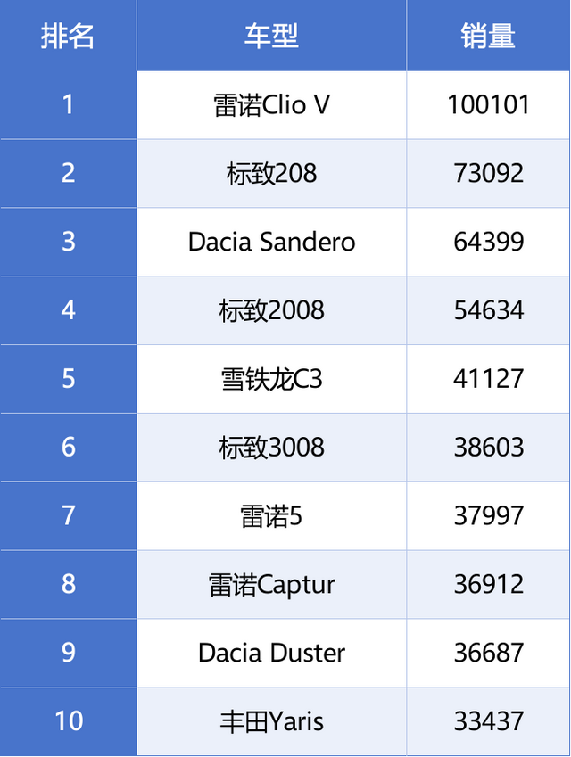其中,雷诺、标致和达契亚依旧是法国最畅销的汽车品牌,而最受欢迎的三款车型分别是雷诺 Clio、标致 208 和达契亚 Sandero,这也已经是连续第三年出现这样的局面。在新能源车型方面,整个排行榜上仅有雷诺5这样一款纯电动车型入围。